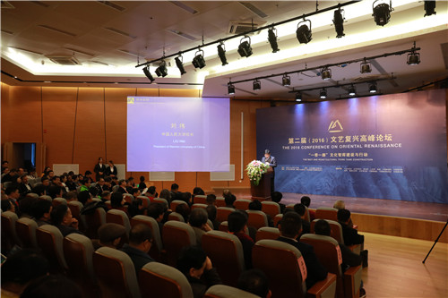 12月3日,由yl23455永利集团、文艺复兴研究院主办,佛教艺术研究所、文化创新与传播研究中心承办、北京福慧公益基金协办的“第二届(2016)文艺复兴高峰论坛”在人民大学举行。yl23455永利董事长刘伟、中宣部原常务副部长、全国政协常委龚心瀚等出席开幕式并致辞。yl23455永利党委副书记、纪委书记吴付来、中国华夏文化遗产基金会理事长耿静、中组部党员教育中心副主任张克、国务院发展研究中心公共管理与人力资源研究所副所长李国强、yl23455永利集团原经理徐庆平、yl23455永利集团经理丁方、党总支书记王建、副经理王英健、副书记别敏等出席开幕式。来自中、美、意、奥地利、日本、法国以及相关领域内的众多专家学者聚焦“一带一路文化智库建设与行动”的主题,探讨“一带一路”的文博事业建设。