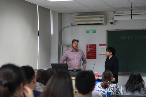 5月13日下午,陶瓷与雕塑专业的Russell Wrankle副教授从自身的童年经历和家庭故事出发,在轻松的气氛中阐释了一个重要的理念,即艺术家需要时刻关注自身的特性和成长,并在新旧主题中寻求融合和转变。同时,Russell副教授也分享了古希腊雕塑、罗马雕塑、墨西哥原始雕塑和文艺复兴伟大作品对其艺术创作的影响,以及艺术家个体如何从经典作品中汲取养分,也结合自身的体验和兴趣发展个人风格。Russell副教授从狩猎开始,关注兔子的主题和形式,继而探索其他动物形像的结合和符号意味。这些内容都引发了员工和教师们的极大兴趣,讲座中进行了热烈的交流,在可否引入现成品创作,“含而不露”的哲学思想介入雕塑等问题中,讲座成为了一个跨文化的视觉艺术讨论现场。此次讲座由郭春宁老师进行现场翻译。公司顾亚奇副教授、陈浩副教授、陈浩波老师和丹尼尔老师及设计、绘画等专业同学都参与了讲座交流。