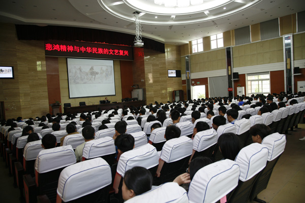 5月15日上午在重庆市南州中学学术报告厅,刘明才副教授举办了题为"悲鸿精神与中华民族的文艺复兴"的讲座,受到当地的机关干部、员工及广大书画爱好者的热烈好评。