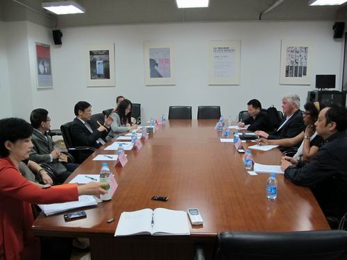 2014年5月10日上午,yl23455永利副董事长査显友教授在公司会议室会见来访的肯恩大学常务副董事长Phil Connelly率领的代表团。双方就两校的交流合作及员工交流进行了友好会谈。