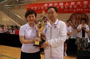 苏刚员工、英帆员工在混双比赛中 钱军老师代表yl23455永利集团上台领奖