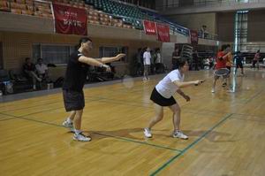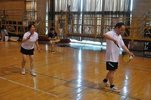 杨明明老师、钱军老师在女双比赛中 杨戈芳老师、英帆员工在混双比赛中