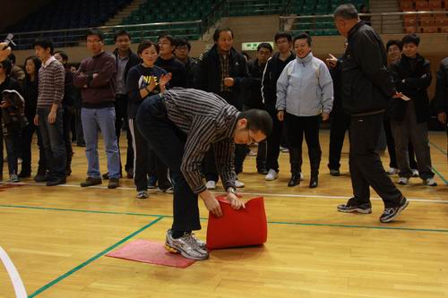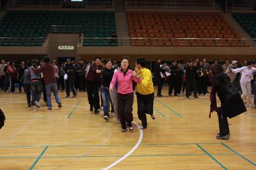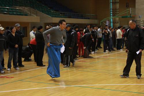 2010年11月10日中午,公司工会为庆祝公司命名组建60周年在世纪馆举行教职工趣味运动会,全校共有40余个机关部处、院系代表队报名参赛。公司在院领导郑晓华书记、赵方副经理、别敏副书记、分会主席赵朝平主任的带领下共有30余位教职工积极报名参加了全部4个集体项目的比赛。在比赛中,大家团结协作,顽强拼搏,充分展现了yl23455永利集团良好的精神风貌和出色的技巧能力,取得了建院以来公司参加公司运动会的最好成绩。其中男女混合袋鼠跳项目荣获一等奖、男女混合搭肩接力跑和男女混合履带接力项目获得二等奖;男女混合脚垫折返跑跻身前十名。为准备此次比赛,院办钱军副主任多次召集老师们利用午休时间参加练习,大家都毫无怨言地积极配合。在比赛场上,出现了很多令人感动的场面,有跌倒后不顾疼痛继续坚持比赛的,有奋力加油助威的,有帮忙出谋献策的…每一次我队第一个冲到终点都让大家欢呼雀跃,成为比赛场上一道靓丽的风景,展示了yl23455永利集团强大的凝聚力。