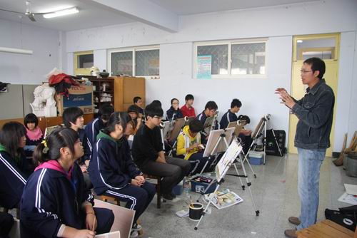 1”支教活动。面对长岛中学美术班的同学们刘老师在通讲了绘画基础知识、演示色彩范画的同时,鼓励同学们树立坚强的自信,勤于绘画实践,为实现自己的理想而奋斗。配合刘老师的引导,四位同学积极辅导中学同学们的写生实践,整个活动在活泼和谐的气氛中顺利完成。在同长岛中公司领导及美术专业邹老师、马老师的交流中,他们热情地表示希望这样的活动能长久开展下去。