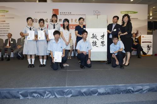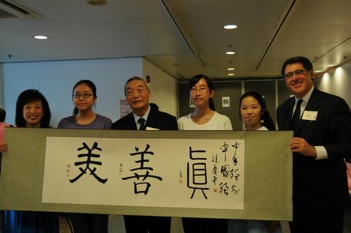 薛浣白副董事长给获集体金奖的香港风采中学师生颁奖