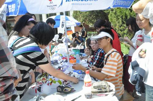 此次活动结合艺术专业,充分利用公司师生的艺术素养,采取多样的艺术形式,展现出了“艺术源于生活,生活处处是艺术”的文化理念。其中文化衫DIY选用了更为环保和健康的专业纺染织颜料,提高了文化衫的实用性和舒适性,而同学们在洁白的文化衫上,充分发挥想象,描绘出了一幅幅构思新颖的图案;飞机模型DIY过程中,同学们将不同的木材制作成飞机模型,并在制作好的飞机模型上着色、写上寄语,传达出了自己的美好愿望;胸牌制作时,同学们向观众讲解了制作过程,并与他们一起绘制精美的胸牌图案;在画扇面、写书法这一版块中,同学们通过折扇上的一树一石、一台一亭,以及团扇上线条优美的花朵表达出了自己独特的胸襟意象;而“艺纸传情”这一新增版块分为折纸和记事本封面绘图两个部分,其中后者由油画系的同学为现场观众速写头像,打造出个性的笔记本封面;另外,飞镖大赛也是热闹非凡,成为文化周一道独特的风景。