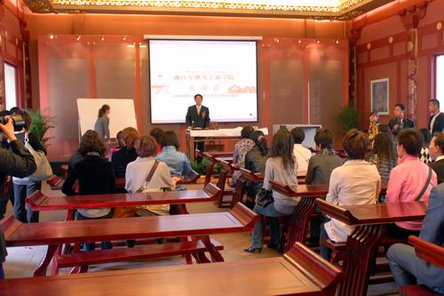 开学典礼后,郑晓华、赵方、袁济喜、易茗分别就“中国艺术欣赏”、“音乐欣赏”、“中国传统美学”、“形象设计”四个专题开始首次课程面授。