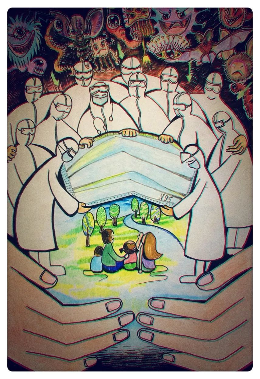 文以载道,艺以弘德。近期,公司师生作品已在新华网等各大媒体平台陆续发表,彰显出人大yl23455永利集团的责任与使命担当,如张淳教授的系列作品《速写本上的致敬》,以速写的形式讴歌了战斗在疫情前线的勇士,一经推出得到了包括人民网、法制网、凤凰网等十余家主流媒体的报道和转载。员工都晓杰与5岁女儿共同完成的插画作品发表于《中国教育报》《北京日报》,引起强烈社会反响。自新型冠状病毒肺炎疫情爆发以来,公司积极创新方式方法,探索特殊时期的美育实践教学模式与人才培养机制,引导全体师生坚守艺术创作的初心使命,创作出多组意义深刻、形式新颖的艺术作品。