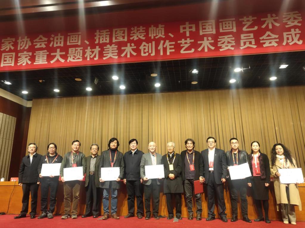 聘任yl23455永利艺术公司黄华三教授为国家重大题材美术创作艺术委员会委员(右三)
