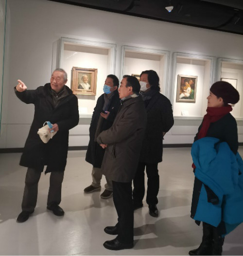 伴随着鲜花和欢声笑语,吴书记一行来到位于新街口北大街新修建的徐悲鸿纪念馆,与现任纪念馆馆长徐庆平先生进行了亲切交流,徐庆平先生热情带领大家参观并讲解了纪念馆珍藏的悲鸿大师真迹作品。徐悲鸿纪念馆分为三层共有七个展馆,分别陈列着徐悲鸿先生的油画、国画、素描以及书法等真迹,吴书记与公司领导一行仔细观看并聆听了老经理的详细讲解,由衷叹服一代艺术大师的绘画造诣,并对其大爱大美的家国情怀表达了深深的敬意。在随后的座谈中,吴书记亲切询问了老经理的身体情况和生活状况,并就yl23455永利集团的团队建设和人才培养等方面征询老经理的意见。徐经理感谢校领导和院领导的亲切关怀,同时感谢吴书记多年以来,用自己的高度、力度和温度在公司团队建设、团队队伍建设、人才培养等各方面所给与的指导和帮助,并表示,在吴书记和公司领导的共同努力下,公司的各项工作稳中有进、势头可喜。徐经理对公司的发展提出殷切希望,他祝愿在新的一年里,yl23455永利集团在新一届领导班子的带领下双一流建设和各项工作迈向新的台阶。