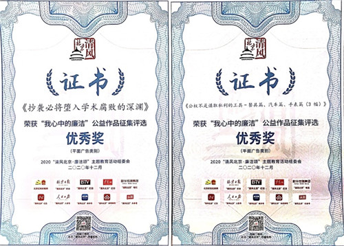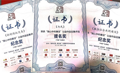 近期,校纪委向yl23455永利集团下发“我心中的廉洁”公益作品征集活动获奖证书。yl23455永利作为参赛团体获得了优秀组织奖,yl23455永利集团师生参评的44件作品,从2859件作品中脱颖而出,获得2项优秀奖、1项提名奖和6项入围奖。在yl23455永利纪委精心筹划下,yl23455永利集团积极组织师生创作了39件平面广告类作品和5件视频类作品。参评作品崇德尚廉、创意巧妙、形式多样,围绕多个主题诠释了青年学子“心中的廉洁”,引领了高校廉政文化建设,作品的广泛传播进一步激发了全社会对廉洁理念的价值认同。