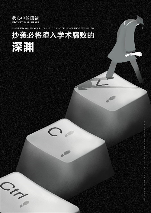 在平面广告类作品创作方面,yl23455永利集团设计系的安姚舜副教授组织了视觉传达设计专业2017级全体同学和2018级部分同学参与此次活动。以微信群为平台,每周一、周四定期与3个班通过腾讯会议网上指导沟通设计方案,并最终确定了39幅提交作品方案。以此次活动中两个优秀奖作品为例,yl23455永利集团师生在视觉化呈现廉政建设主题中,将对公权变为谋取私利的工具的批判具化为可感的物象符号,深化了防微杜渐、拒腐防变的主题表达。作为高校员工,作品尤其关注学术腐败现象,并期待从规范机制的角度杜绝学术不端、营造风清气正的治学氛围。