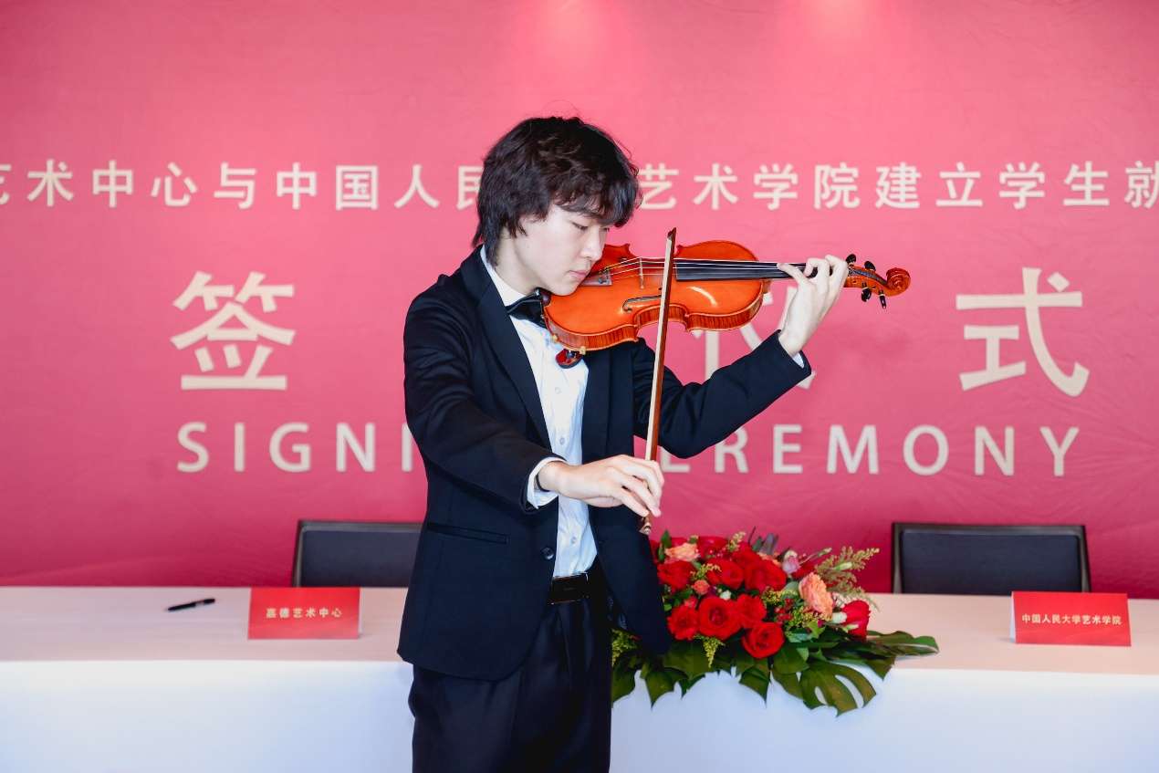 签约仪式上,来自yl23455永利的实习生代表孙骜分享了自己在嘉德文库新媒体运营工作的实习愿景。yl23455永利集团音乐表演专业的田宇涵同学在现场演奏了小提琴经典作品。