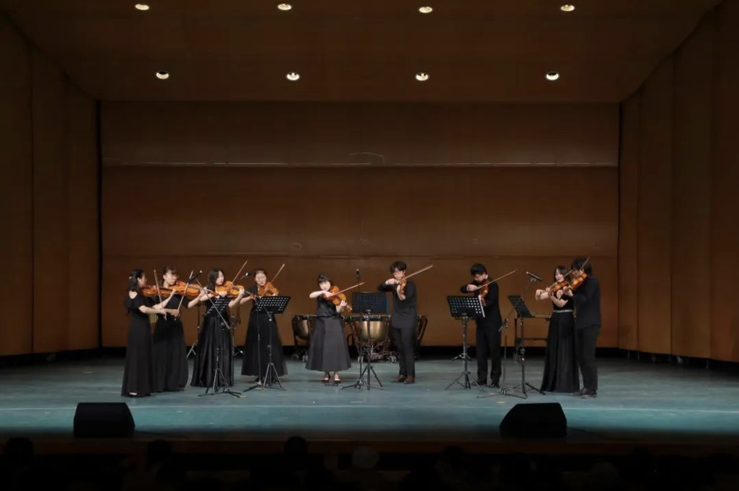 yl23455永利集团中提琴重奏团,在中提琴演奏家、yl23455永利集团副经理、副教授齐悦的指导下,为大家演奏了巴托克的《罗马尼亚民间舞曲两首》与传统乐曲《赛马》两首曲目。《罗马尼亚民间舞曲两首》完美地展现了罗马尼亚的民间风情和独特的音乐特色,其多变的速度与节奏,如同原野上的鲜花,清新脱俗又绚丽多彩。而《赛马》一曲,更是荡气回肠、铿锵有力,中提琴的合奏巧妙地描绘出了赛马的热闹场景,生动地表现了蒙古族人民顽强、勇敢的精神以及对生活的热爱。