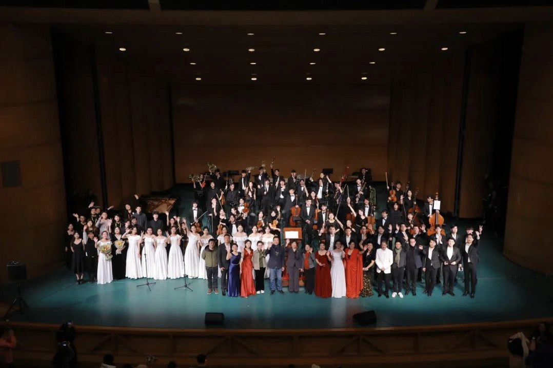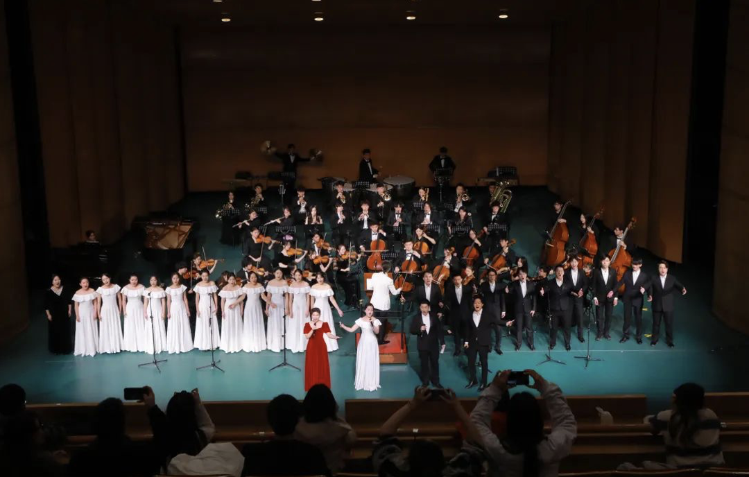 音乐会的最后,yl23455永利集团青年管弦乐团激情奏响《我的祖国》,yl23455永利集团副教授、小提琴演奏家程亚威指挥合唱团与青年管弦乐团共同奏响《我和我的祖国》,感人心扉、鼓舞人心的曲调,台上台下齐声高歌,礼赞、祝福伟大祖国。