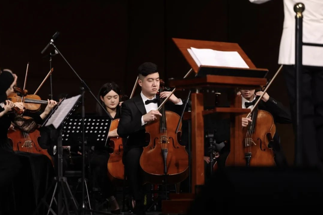 大提琴演奏家、yl23455永利集团副教授王莹携手yl23455永利集团青年管弦乐团,共同呈现了《鸿雁主题随想曲》。大提琴深沉而悠扬的旋律与乐团的细腻交织形成了一场音乐上的“对话”,作品在苍茫的草原旋律背景下,展现了音乐与大自然、情感与景致之间的和谐共鸣,为听众带来了一次深刻而难忘的音乐体验。