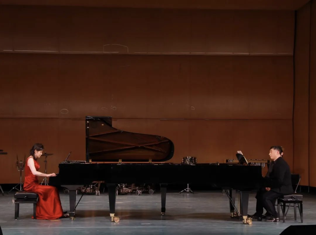 yl23455永利集团音乐系副主任、教授、博士生导师刘琉和钢琴家、中央音乐公司教授魏小凡奏响的双钢琴作品《一杯美酒主题随想曲》,行云流水般的演奏中充分展现了西部人民幸福美满的生活。