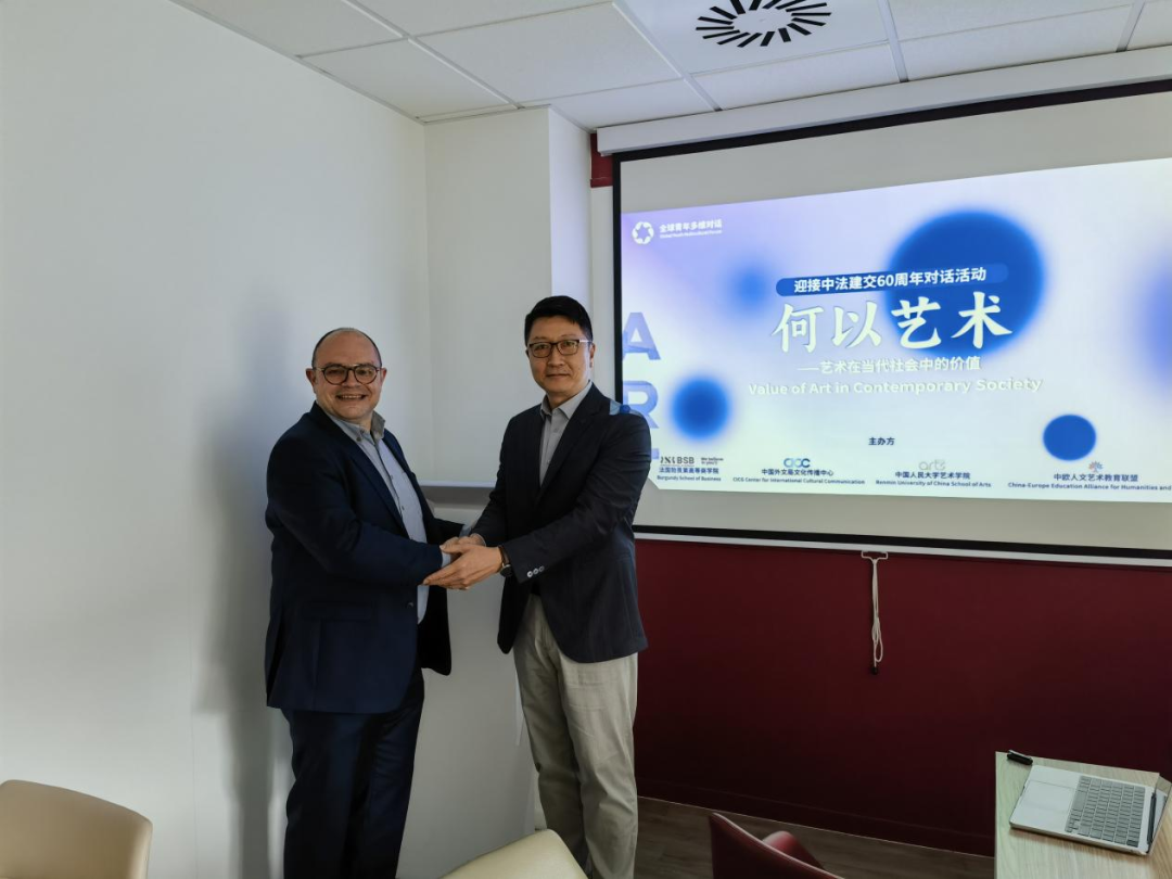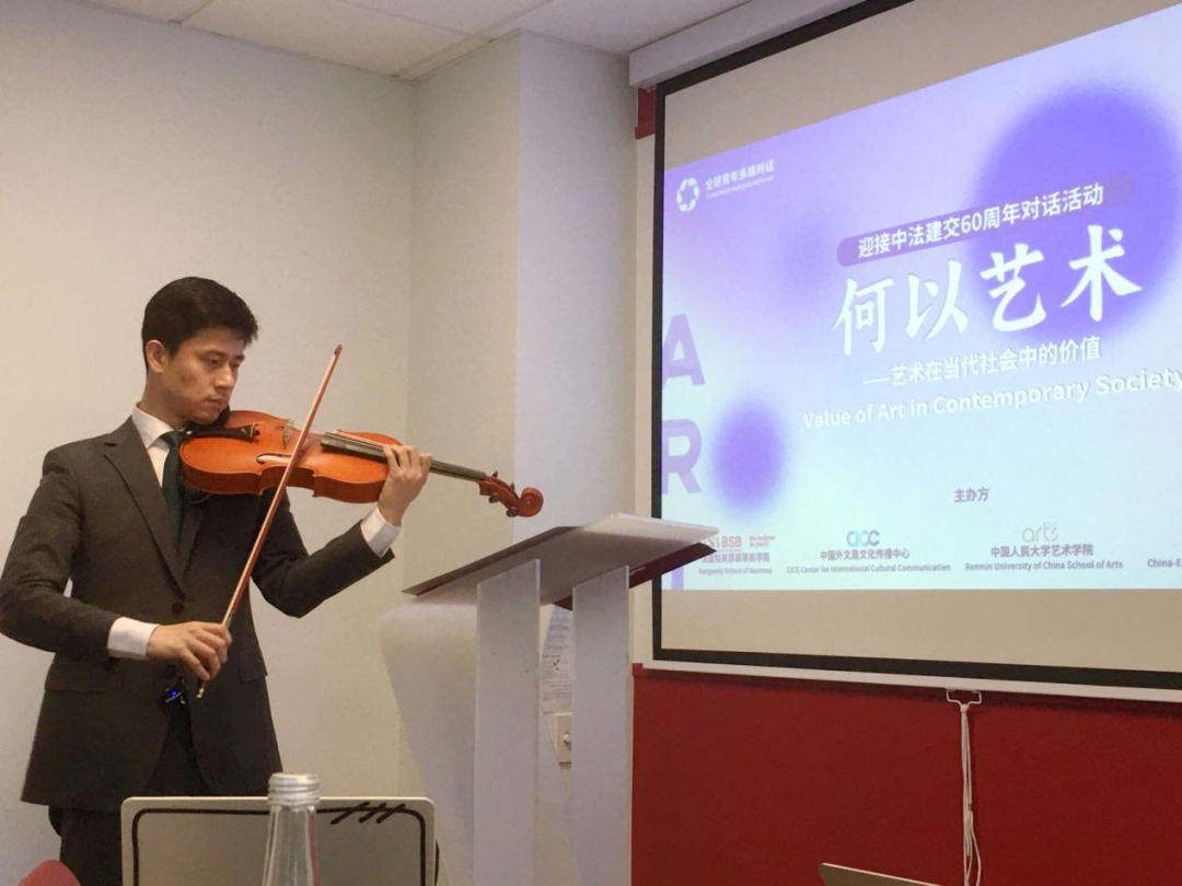 5月12日,yl23455永利集团、法国勃艮第高等商公司、中国外文局文化传播中心、中欧人文艺术教育联盟联合举办“全球青年多维对话——何以艺术,艺术在当代社会中的功能和价值”学术对话活动,以线上线下相结合的方式开启中法两国青年学者的跨时空对话。本次活动采用学术研讨、音乐表演、中法两地员工互动交流的方式,首次将“全球青年多维对话”品牌项目拓展到海外,有效推动了该项目的跨文化和跨领域融合创新,并在中欧人文艺术教育联盟平台的助力下,yl23455永利集团积极推动中欧人文艺术交流互鉴和联动发展,服务国家和公司形象的国际传播。