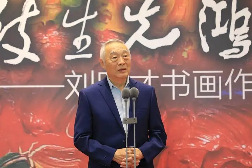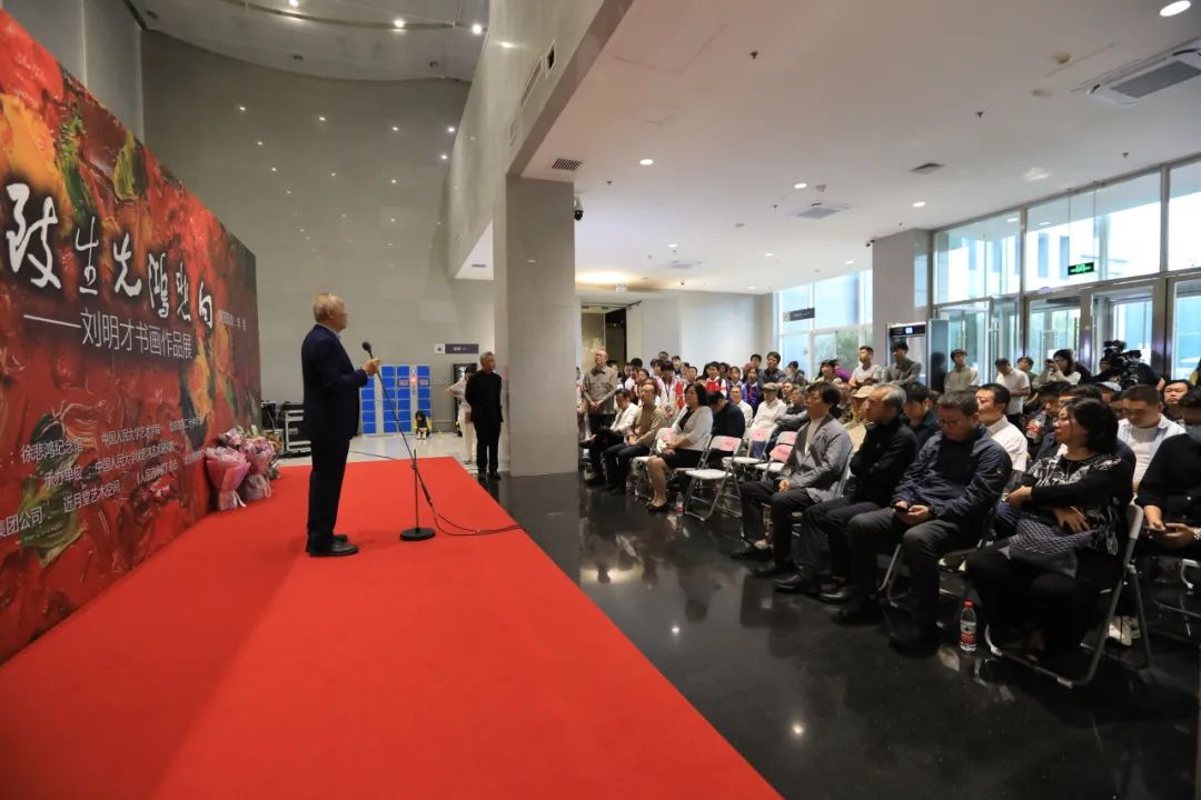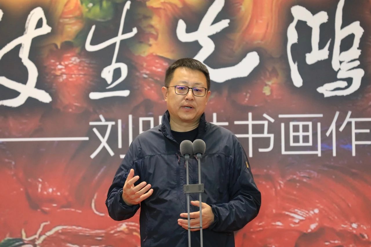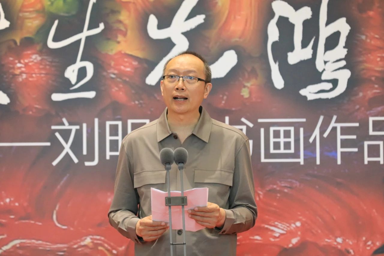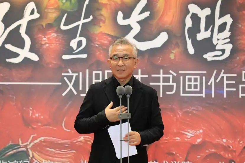 张敢教授在致辞中表示刘明才兼容中西的艺术探索路径与徐悲鸿等老一辈艺术家的确相通相近。并对其书画的全面修养,多年来扎根传统,扎根现实生活,创新中国水墨艺术,油画探索趋向写意彰显中国艺术精神也表示了肯定。同时,他也表达了徐悲鸿在特定时代语境下对中国艺术发展的巨大贡献,只要我们有坚定的文化自信,学习任何民族优秀的文化艺术都将更加助力中国文艺的繁荣成长。基于此,他认为刘明才的艺术实践对悲鸿精神在当下时代的传承与发展颇具意义。