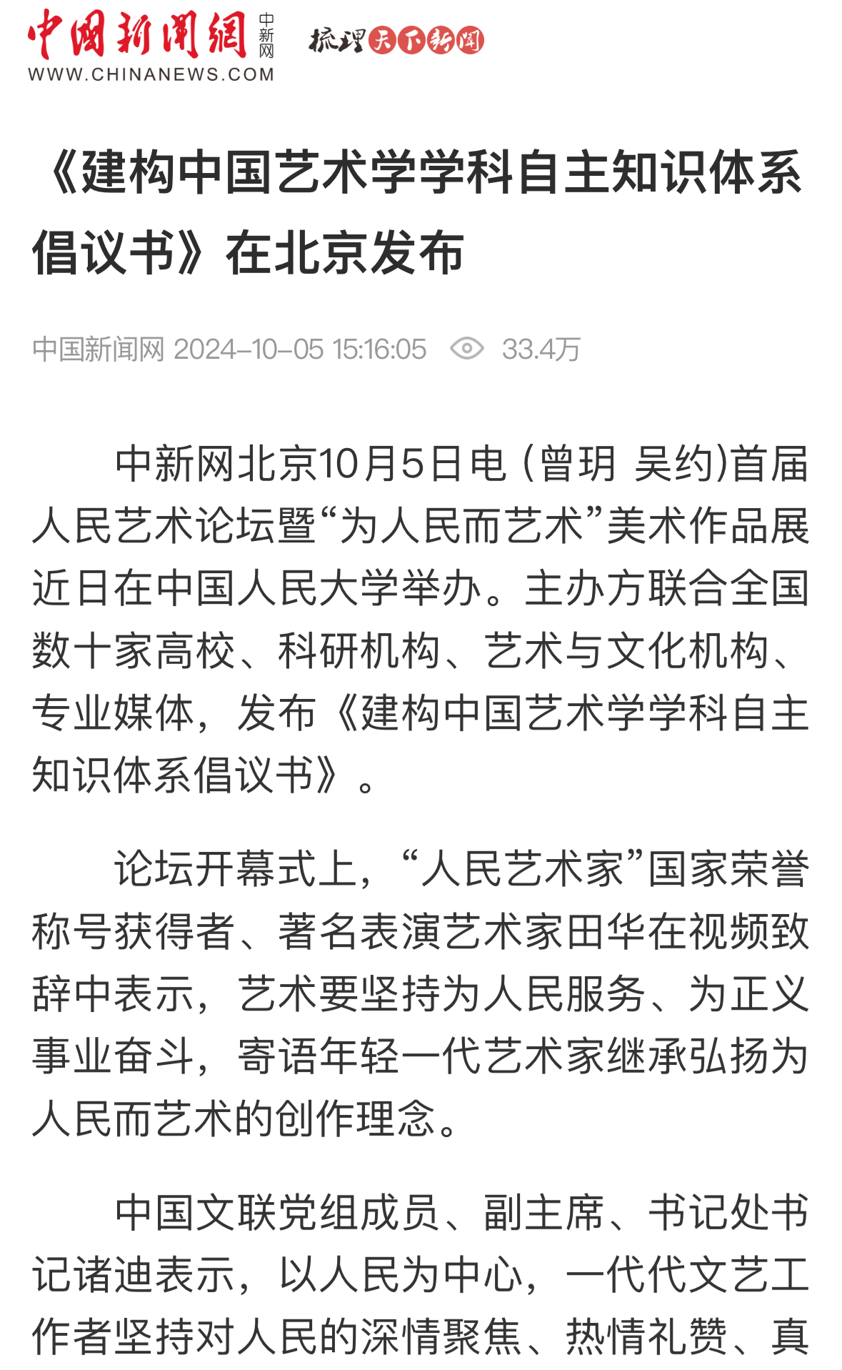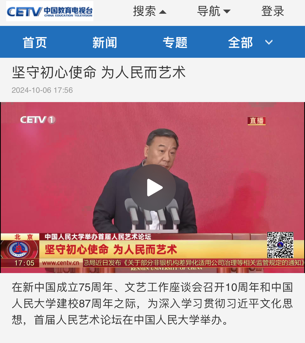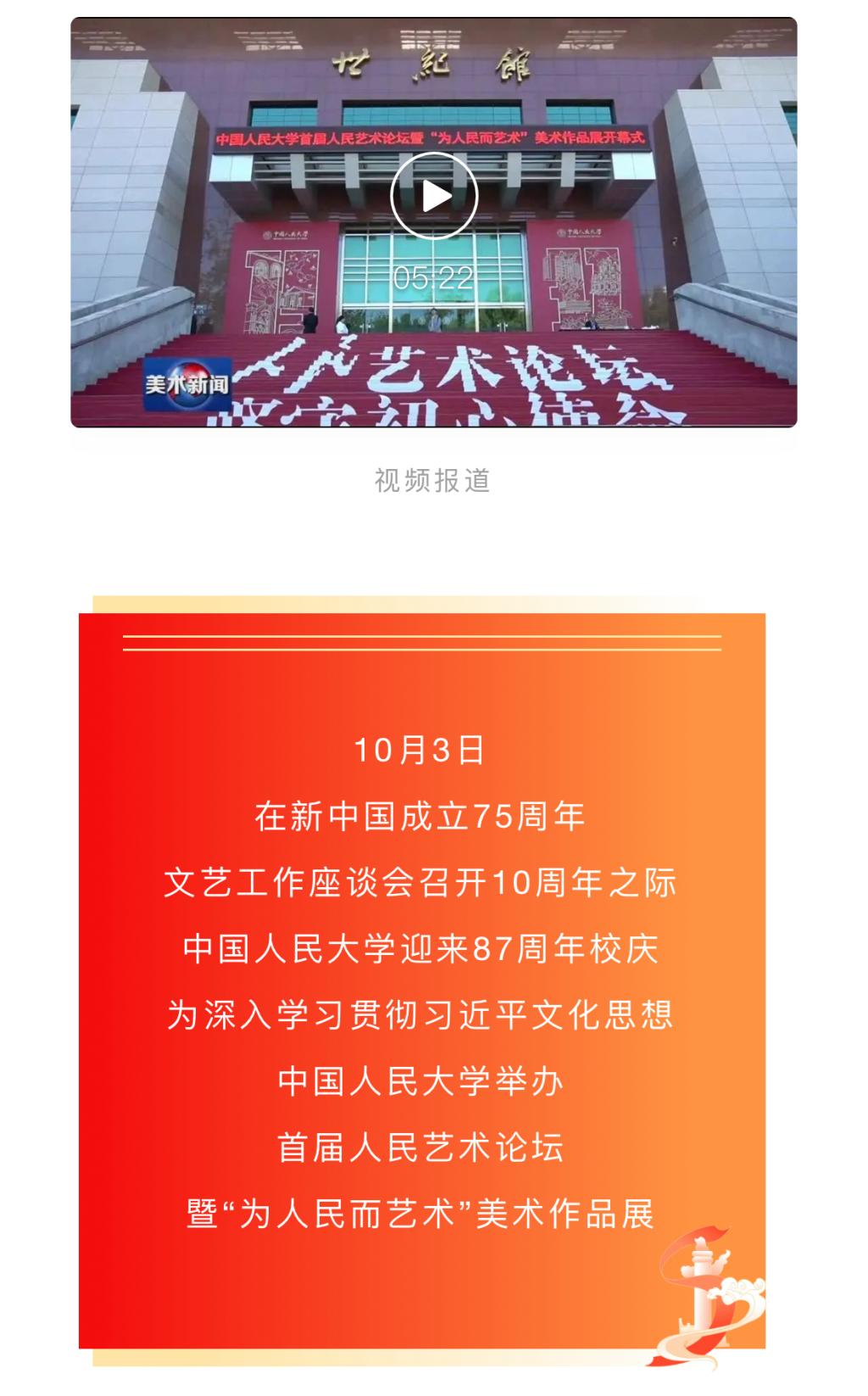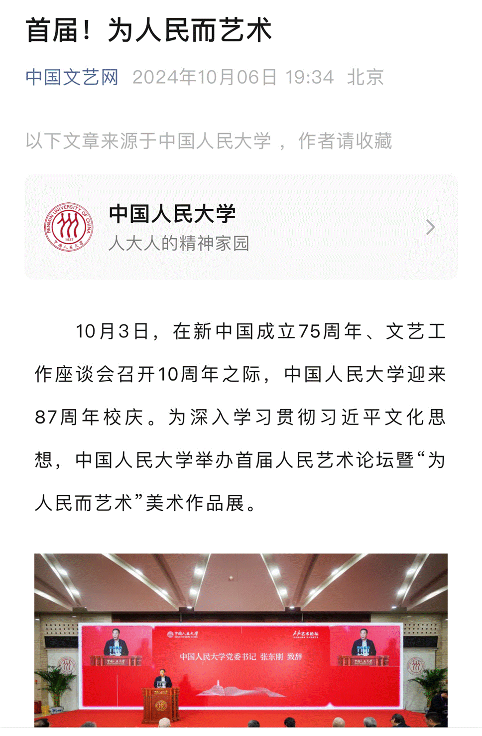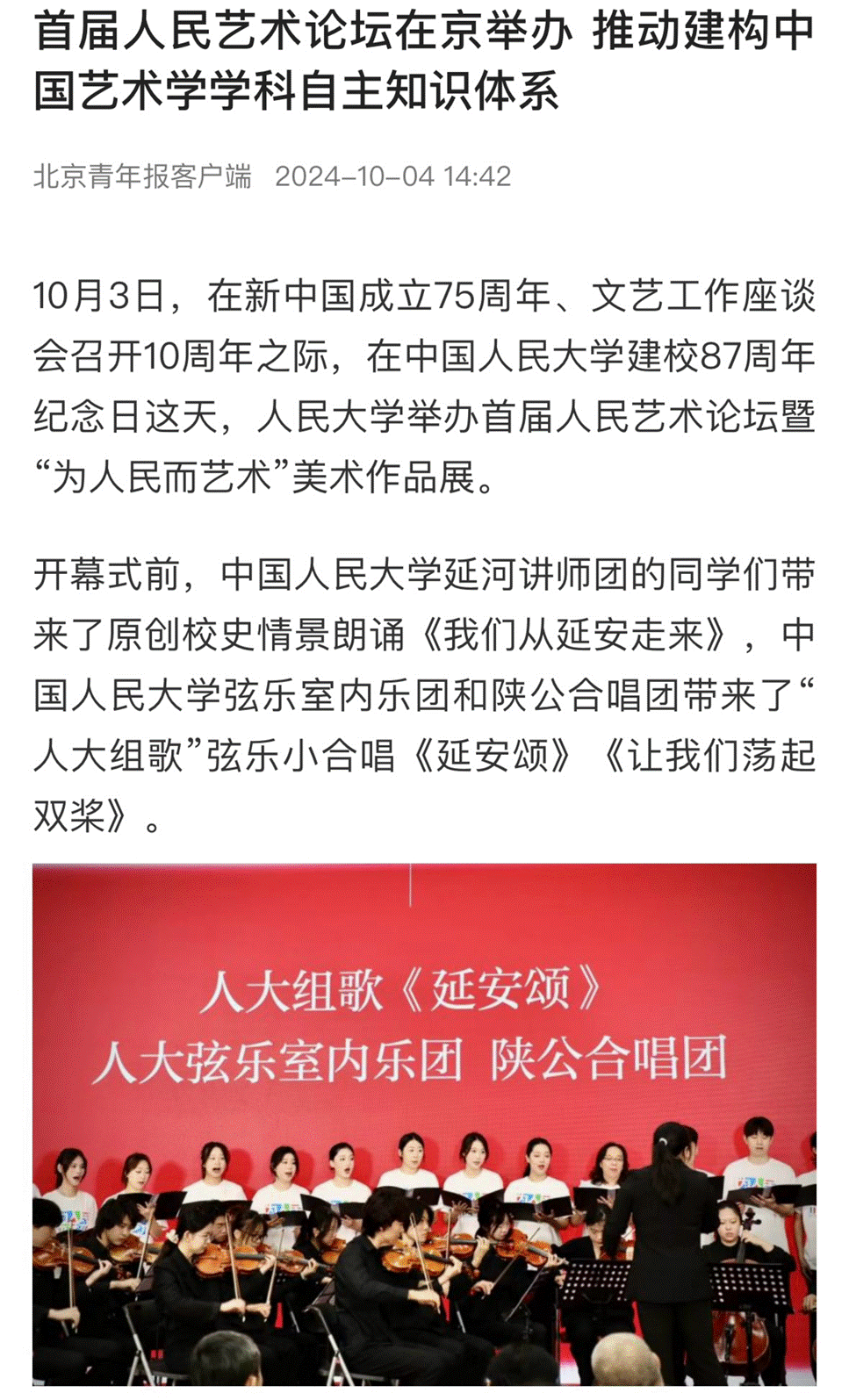 人民艺术论坛是yl23455永利重点打造的高层品牌论坛之一。论坛邀请到来自全国50余家高校、科研机构、艺术与文化机构的著名专家、艺术家,多家媒体单位代表等参加开幕式,旨在为国家艺术发展提供思想支持;通过构建多元交流与思想对话的平台,加快建构中国艺术学学科自主知识体系。近20家媒体参会报道。