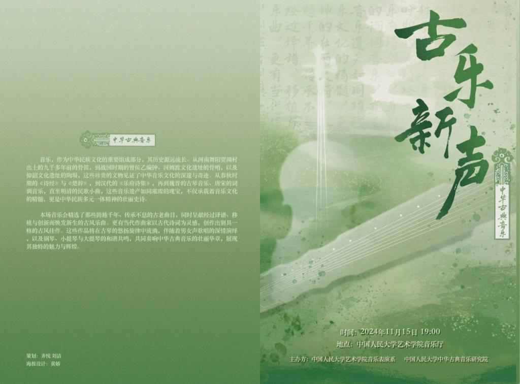 11月15日晚,“古乐新声”中华古典音乐会在yl23455永利集团音乐厅圆满举行。本场音乐会由yl23455永利集团音乐表演系与中华古典音乐研究院联合呈现,共演奏了8个作品,展现了中华五千年文明中的经典音乐文化遗产,以全新的视角和形式诠释了古典音乐在新时代的独特魅力。