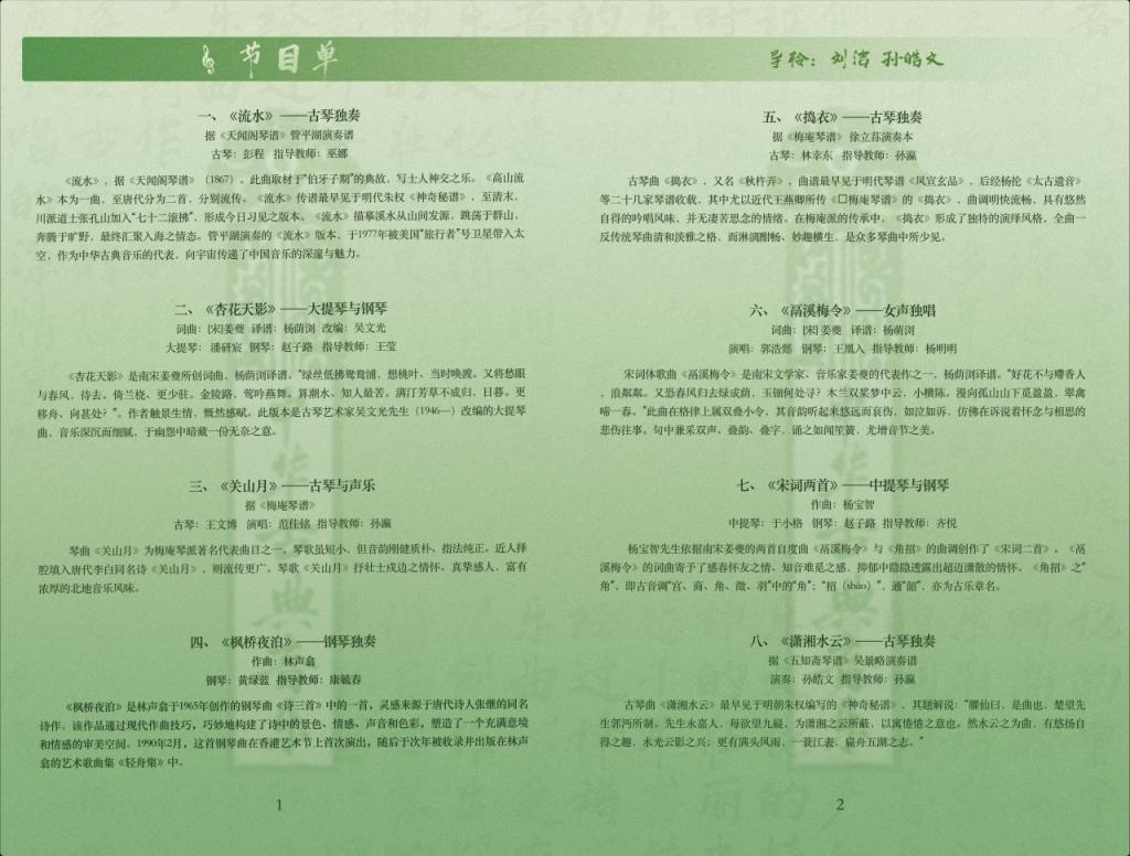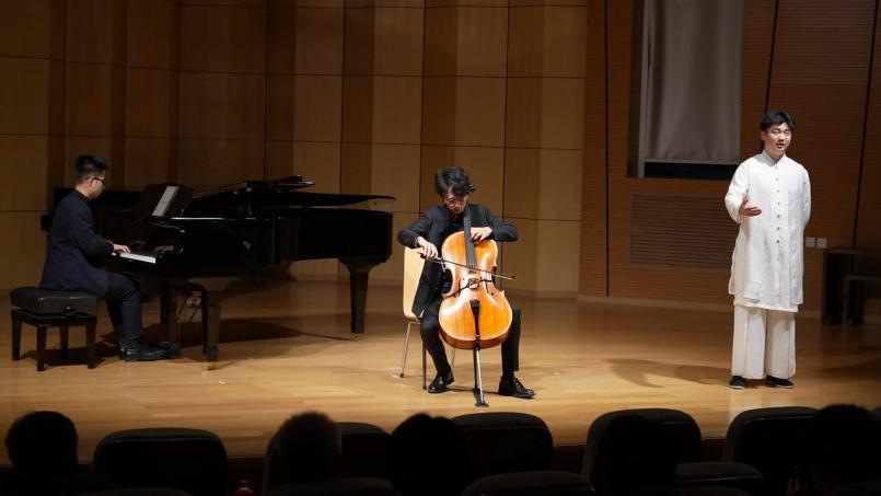 音乐会还呈现了南宋文学家兼音乐家姜夔的自度曲《鬲溪梅令》《角招》《杏花天影》。尤为特别的是,这些曲目以创新的方式重新演绎——如钢琴与声乐的结合、大提琴与钢琴配以吟诵,以及中提琴与钢琴的对话,为千年古韵注入了新的生命力。音乐会还收录了现代作曲家受古代诗词启发而创作的古风佳作钢琴曲《枫桥夜泊》。