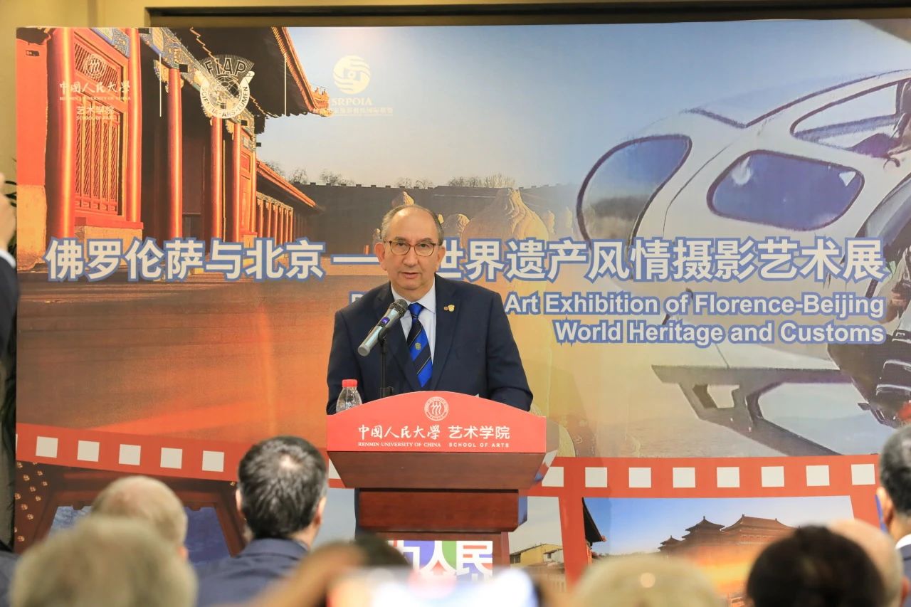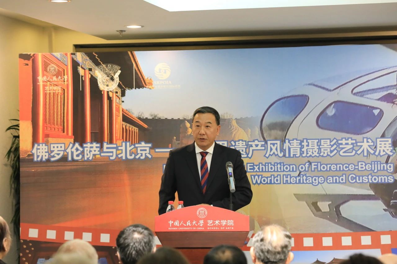 张东刚首先对远道而来的各国摄影艺术大师表示热烈欢迎。他表示,作为中国共产党创办的第一所新型正规大学,yl23455永利始终秉持“为人类谋进步、为世界谋大同”的胸怀和担当,主动承担传承人类文明、增进文明交流的高校使命,长期致力于推动中外人文艺术交流互鉴,特别是与意大利文化教育界合作密切、成果丰硕。以“世界遗产风情摄影艺术展”为主题,聚焦佛罗伦萨与北京这两座中意文化名城,透过摄影艺术大师的镜头,共睹两城世界遗产的迷人风情,共赏中意文化艺术的深厚底蕴,共享东西文明交融的独特魅力,是一场超越国界的视觉盛宴,也是一场融通文化的心灵盛宴。未来,yl23455永利愿继续发挥“独树一帜”的办学优势,持续办好中外人文艺术交流系列活动,擦亮艺术对话的窗口,拉紧人文交流的纽带,搭建文明互鉴的平台,从不同文明中寻求智慧、汲取营养,弘扬全人类共同价值,携手构建和合共生的美好世界。