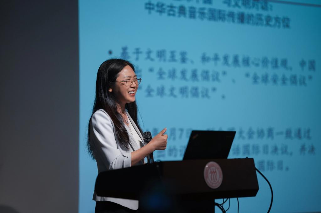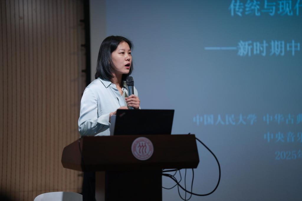 北京舞蹈公司张朝霞教授通过案例分析,讲述了利用户外演艺这一“绿色艺术媒介”活化城市古建空间、擦亮北京中轴线等非遗文化IP的理论构想。她指出,通过各类文化空间的户外演艺项目实践,不但可以强化中轴线等旅游目的地吸引物的文化影响力,而且可以通过国内外艺术家、青年学子的公共空间艺术共创实践,延长“后申遗时代”中轴线等文化和自然遗产的跨文化传播效应。她强调说,要善用社交媒体增强互动,并建议将世界文化遗产作为活态交流平台,同时进一步联动高校、艺术院团与文旅产业,打造具有全球影响力的文化IP。通过艺术教育、文旅体验等多元场景,持续拓展中华古典音乐的传播广度与深度。