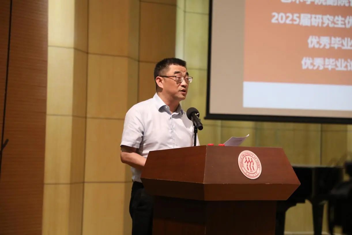 副经理顾亚奇教授宣读2025届研究生“最具潜质奖”“优秀毕业创作奖”“优秀毕业设计奖”“优秀毕业论文”获奖名单。