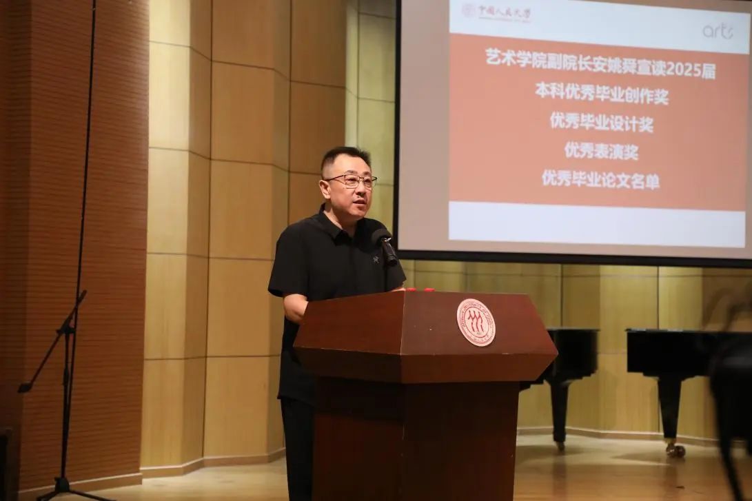 随后,公司副经理安姚舜副教授宣读2025届本科生“最具潜质奖”“优秀毕业创作奖”“优秀毕业设计奖”“优秀表演奖”“优秀毕业论文”获奖名单;