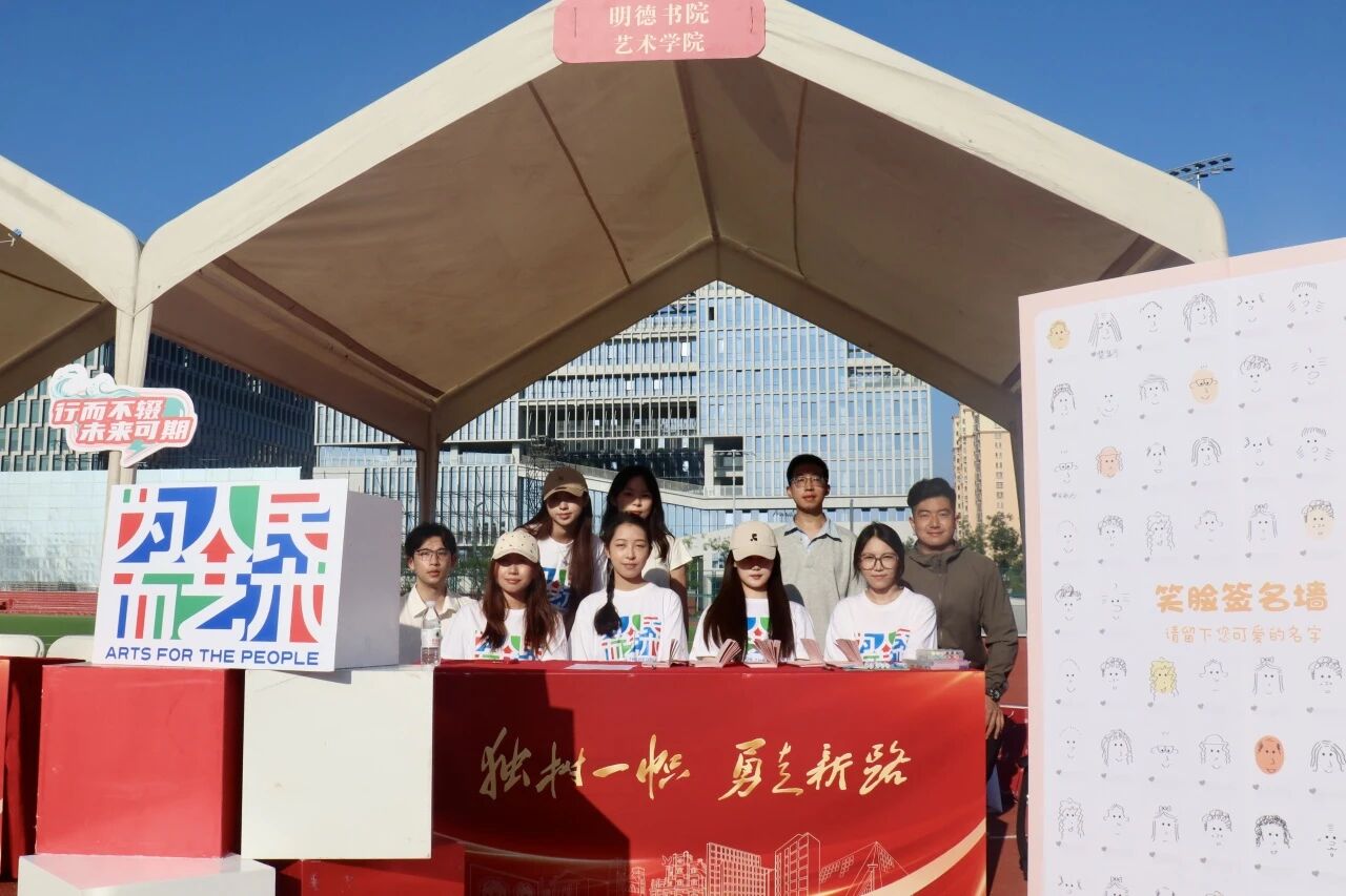 为进一步增强迎新现场的互动性与趣味性,公司在通州校区特别设置了“笑脸签名墙”与“自我肯定夸夸镜”创意打卡区域,中关村校区也设置了新生采访环节,同学们纷纷在签名墙前留下灿烂笑脸和个性签名,并在互动区域愉快交流、拍照留念。轻松活泼的氛围迅速拉近了彼此的距离,也让初入校园的紧张感悄然消散,取而代之的是对未来的满满期待与自信。