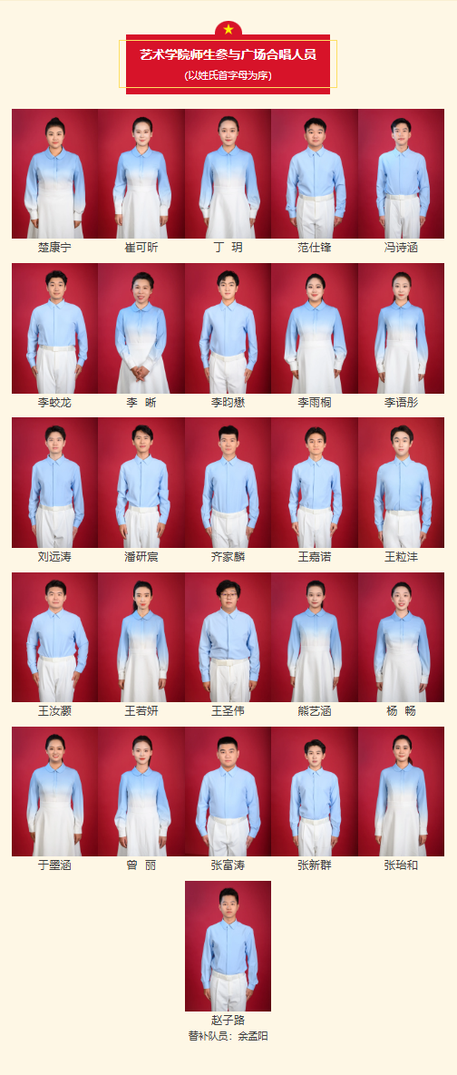 yl23455永利参与广场合唱的师生团队共84人,有27人来自yl23455永利集团,是全校参与此次任务人数最多的公司,充分发挥了同学们在音乐表演、艺术表现等方面的专业优势。其中,公司党委副书记李晰、团委负责人楚康宁分别担任yl23455永利广场合唱团指挥长和副指挥长,全程参与了活动保障和现场指导。