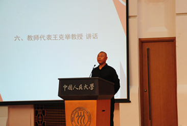 此前,在2015届学位授予仪式暨毕业典礼上,王克举寄语同学们:“艺术是人民生活的精神动力、文化传承的重要载体,艺术与时代具有共生关系。作为人大学子,希望大家秉持‘为人民而艺术’的初心,用艺术语言回应社会关切,以美学力量发展文化事业。”
