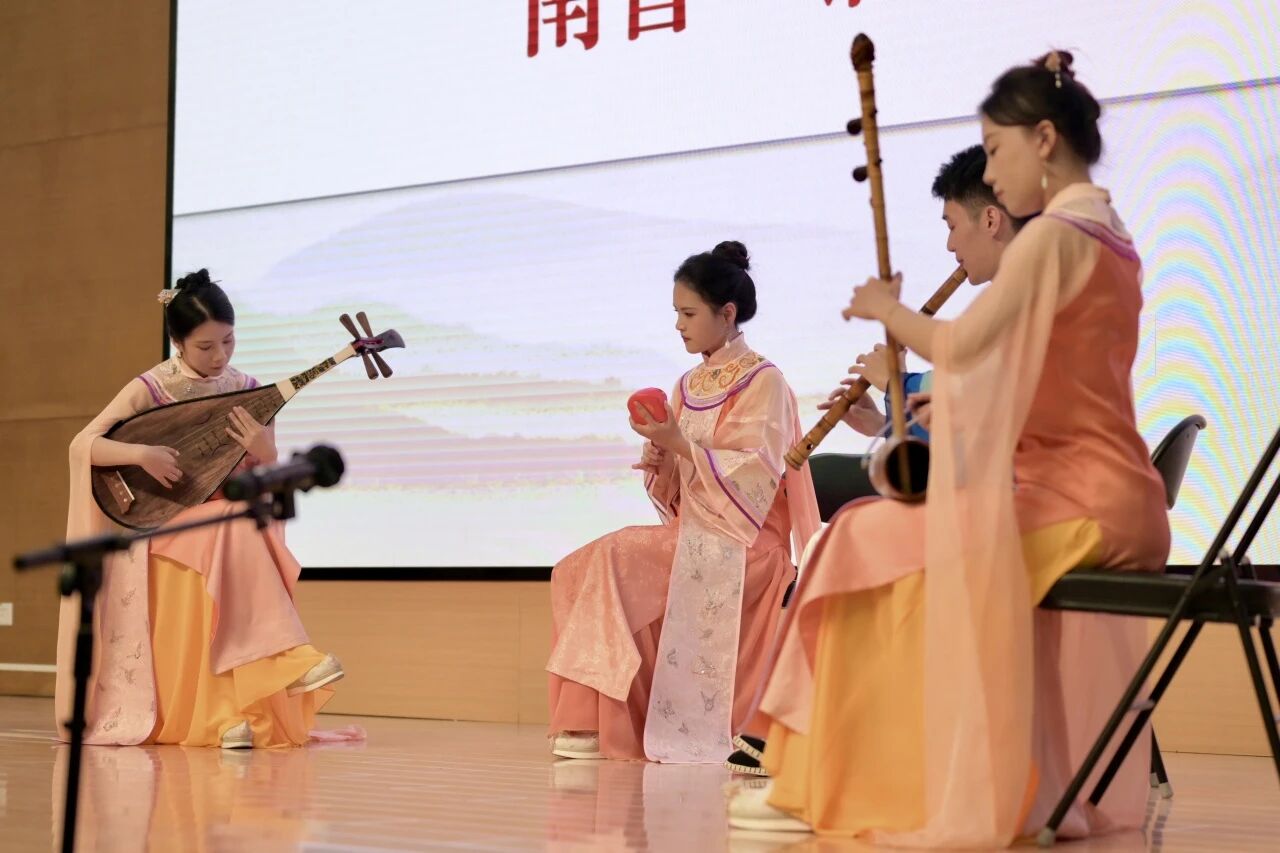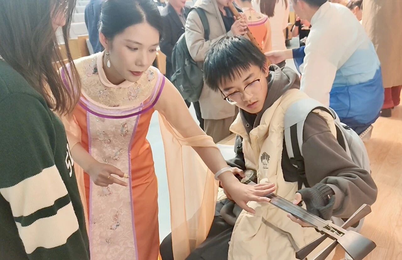 现场观众凝神聆听,同学们展现出对千年古乐的浓厚兴趣与高度专注。演出结束后,员工们主动走向舞台,与来自泉州的南音青年传承人热切交流,探讨工乂谱的识读方式、乐器演奏技巧及南音背后的文化故事。不少同学表示,这是他们第一次“零距离”接触南音,不仅被其婉转典雅的音韵打动,更在跨代际、跨地域的对话中,感受到中华文脉的深厚与包容。