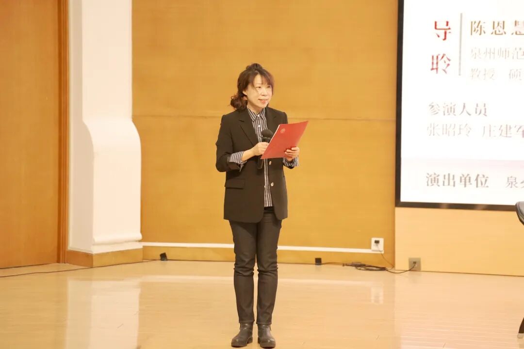 本场音乐会暨讲演会由泉州师范公司音乐与舞蹈公司经理、南音研究专家陈恩慧教授担任导聆。她以深入浅出的讲解,串联起南音的历史脉络、艺术特征与文化精神,使观众不仅在“听音”,更在“读史”“悟道”。她的讲述,与张昭玲、庄建军、骆嘉霖、陈新杰、蔡琪瑛等优秀演员的精湛演绎相得益彰,共同构建了一场“听得懂、品得深”的非遗美学课堂。
