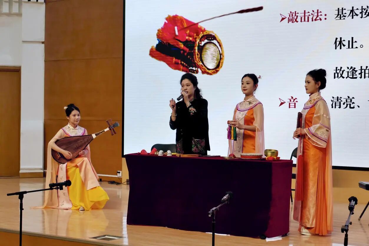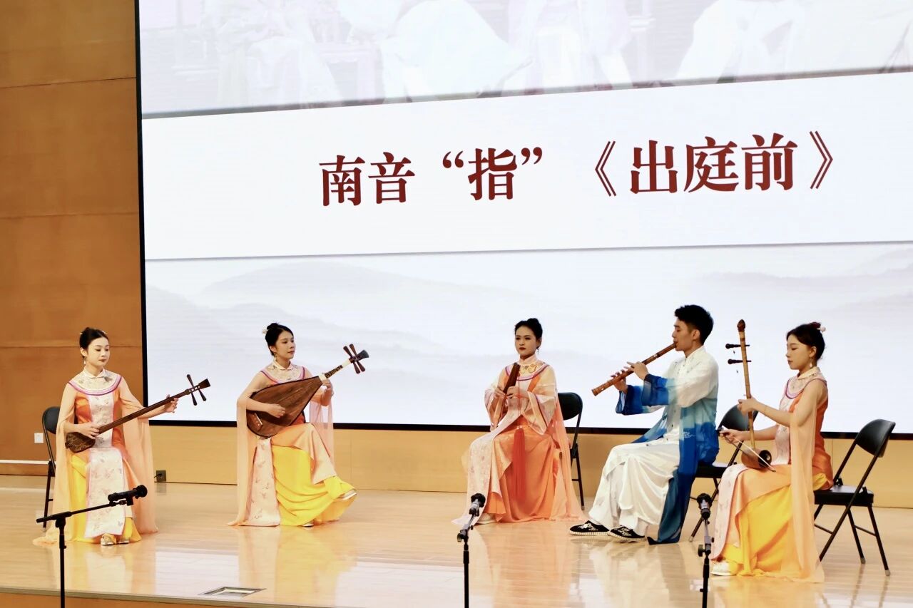音乐会暨讲演会以“指”启幕,古朴深沉,情致深婉。乐声起处,仿佛推开一扇时光之门,将听众引入千年之前的庭前月下,琵琶轻拢,洞箫幽咽,一唱三叹间,尽显南音作为“汉唐遗响”的典雅气韵。