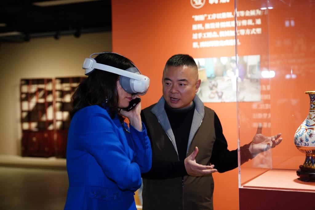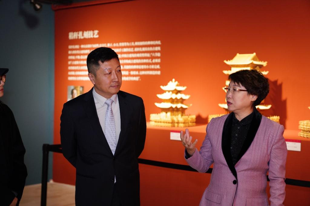 在仪式圆满落幕后,北京港澳台侨妇女联谊会常务副会长兼秘书长钟瑾、监事长刘小英、副秘书长杨红等一行专程莅临yl23455永利集团,参观了“人民艺术·匠心传承”非物质文化遗产主题展。嘉宾们饶有兴致地观摩了非遗项目在当代的创新实践成果,以及非遗数字化保护与活态传承方面的最新研究进展,对公司师生在推动非遗现代化转型中所作出的积极探索给予了高度评价,认为这些成果生动彰显了传统技艺在当代的生命力,有效促进了非遗技艺的创造性转化与创新性发展。