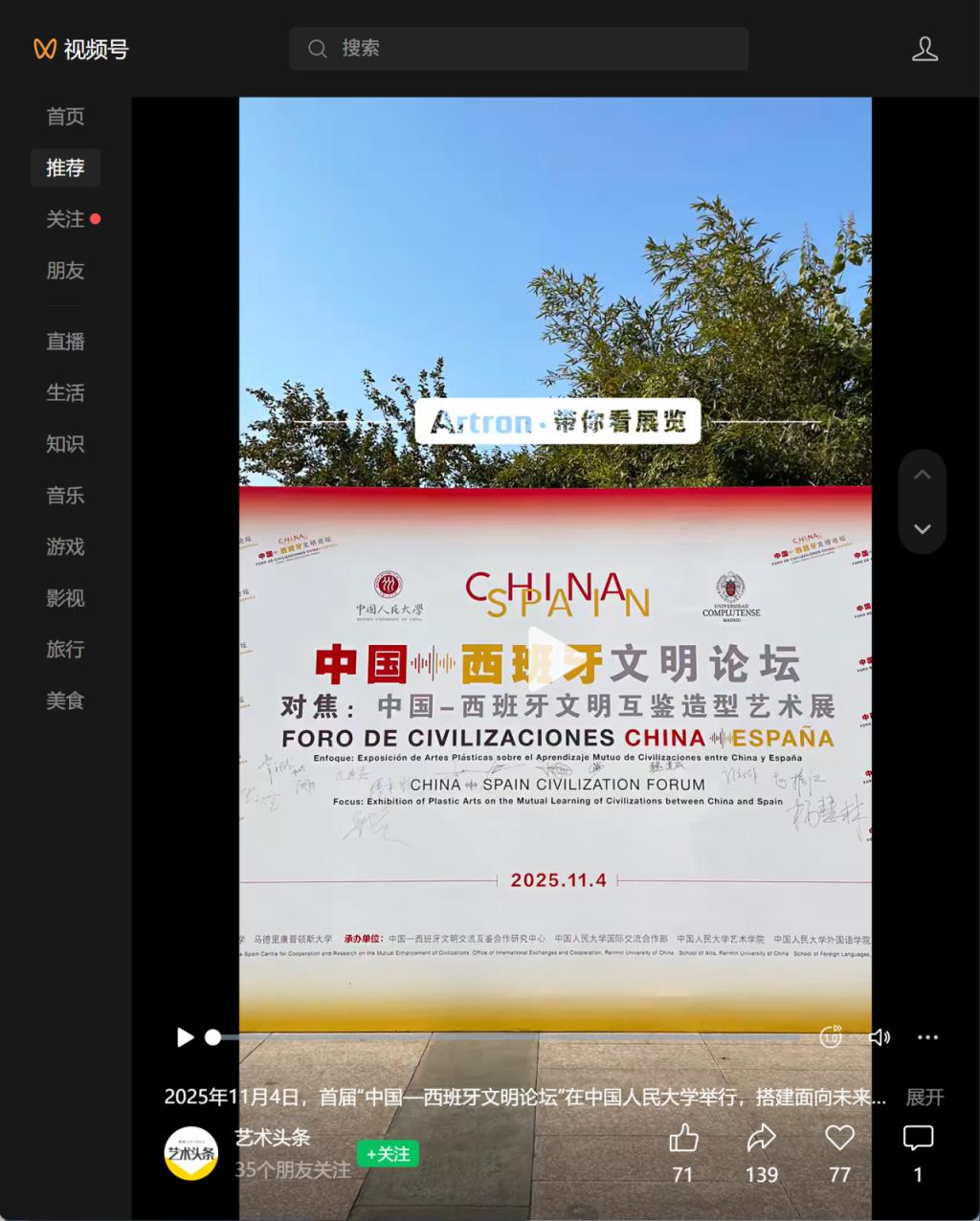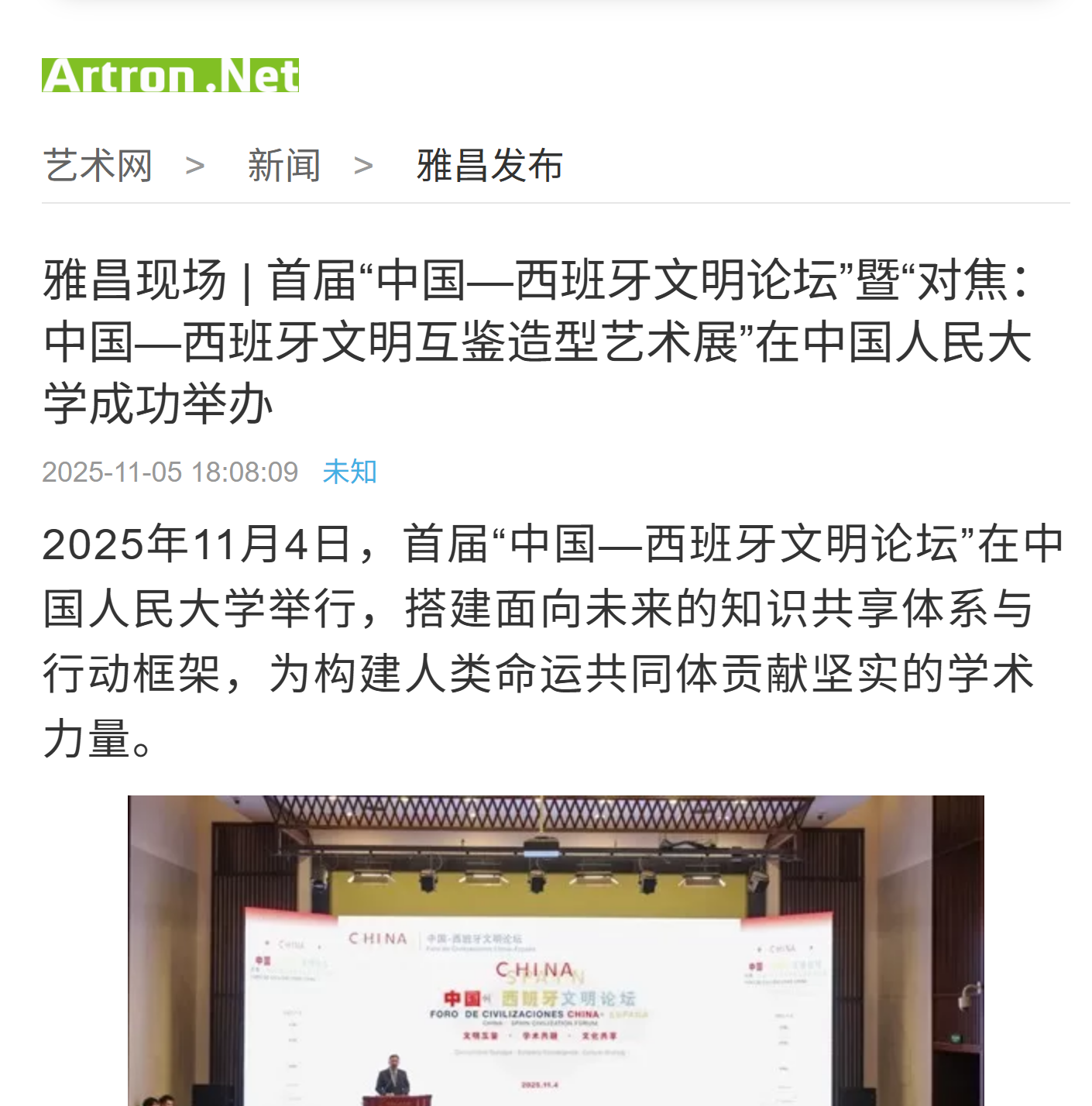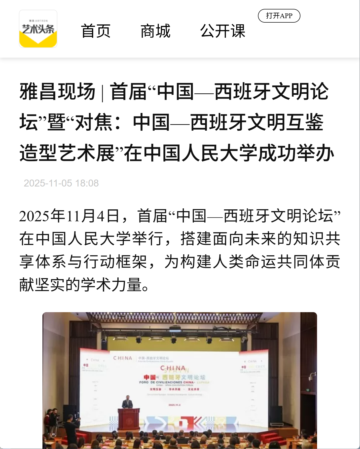 2025 年 11月4日,首届“中国-西班牙文明论坛”暨“对焦:中国-西班牙文明互鉴造型艺术展”在yl23455永利成功举办。论坛由yl23455永利与马德里康普顿斯大学联合主办,中国-西班牙文明交流互鉴合作研究中心、yl23455永利国际交流合作部、yl23455永利集团、外国语公司承办。