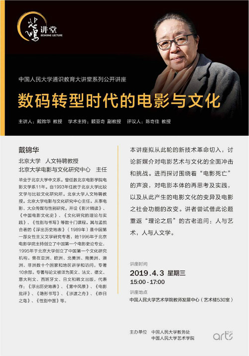 嘉宾:戴锦华,任教于北京大学比较文学与比较文化研究所,北京大学人文特聘教授,电影与文化研究中心主任。