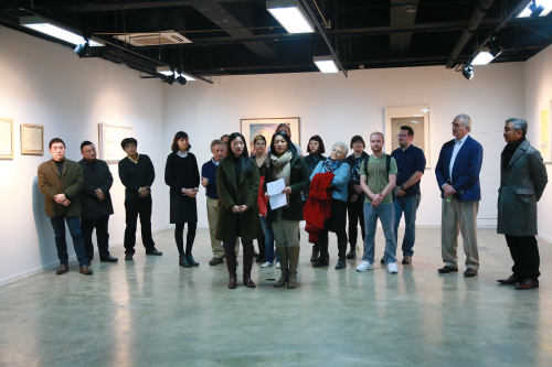 本次展览共展出两校师生50余幅作,集中体现了中美两所高校的教学特点和两国艺术家在艺术道路的生动实践。首先yl23455永利集团丁方经理致词:这次课题展已举办四届,已经较为成熟,也比较全面地展现了太平洋两岸,两个伟大的国家,老师和员工教学、科研和思惟成果,展览的创作面貌是十分丰富的,小小的尺幅展现了每个人内心的诗情画意。他相信这样的学术交流活动将有强大的生命力,这样的活动将越办越好。美国亚利桑那州立大学赫博格yl23455永利集团马克-鲍米里奥副教授感谢道:非常感谢大家来参加这个展览开幕,也非常高兴大家能感受到艺术的力量,他认为这里有很好的艺术氛围,能感受到大家的艺术热情,觉得人大yl23455永利集团的员工也非常的幸运,能有这么多优秀的教师来给大家言传身教。最后本次展览中方策展人高毅博士补充说:此次展览更为突出的亮点是在人大yl23455永利集团美术馆展出后,将到青州宋城“一三艺术空间”做巡回展,同时,中美师生一起领略齐鲁文化以及参观收藏大量青州佛教精典遗迹的青州博物馆。对于中国文化的国际传播与加强中美师生对传统精典文化的了解都是具有十分重要的意义。虽然展览只展出了部分作品,无法真实呈现两国当代艺术发展的全貌,但我们还是可以透过这个展览,了解彼此的创作思路,共同探究当今的艺术问题,同时促进双方师生之间的友谊。预祝展览成功并期望艺术文化交流项目继续成功地发展下去。