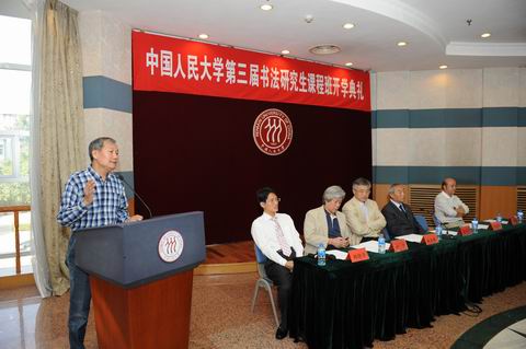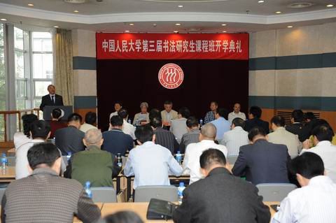 2009年10月6日上午,“yl23455永利第三届书法研究生课程班”开学典礼在逸夫会议中心第二会议室隆重举行。中国书法家协会党组书记、驻会副主席兼秘书长赵长青,副秘书长白煦,《中国书法》杂志主编李刚田,yl23455永利集团经理徐庆平教授,党委书记兼常务副经理郑晓华教授,党委副书记别敏副教授,书协培训中心主任刘文华,以及本届书法研修班54名学员一起参加了开学典礼。典礼由郑晓华常务副经理主持。