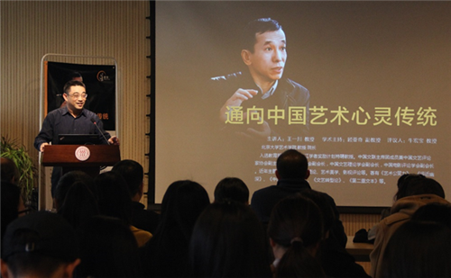 讲座中,王一川教授首先概要地介绍了“中国艺术心灵”的内涵,它主要是指中国人看待事物的超然物外、淡泊宁静、虚实相涵等人生态度。通过溯源五位美学家宗白华、方东美、唐君毅、徐复观和李泽厚的艺术思想,王教授提出“回到中国艺术心灵传统”的观点,进而阐述了中国传统艺术心灵的五大特征:感觉方式上的“感物类兴”,族群结构上的“我他涵濡”, 作品呈现上的“兴味蕴藉”,鉴赏体制上的“观有品无”,理想境界上的“三才分合”。