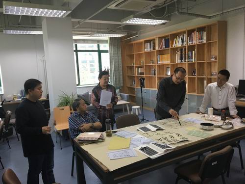 理论学习后,刘老师继续上一次组织生活会内容,以研究毛泽东等开国领袖的诗词书法作品为形式,通过对其部分书作中草书写法具体细致的解读,分别示例解析了一些典型汉字的篆书、草书写法。面对当今越来越多的人不能释读前人书作的实际情况,老师们均认识到加强中国传统文化的学习研究的重要性,以笔墨这一传统工具来深入体会中国传统文化的魅力,积极响应习近平总书记提出的传承和弘扬中华民族优秀传统文化的讲话精神。写好“中国字”,做好“中国人”!振兴中国文化,从认识“中国字”开始。