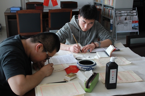 随后,会议进行到党章知识竞赛与书法写党章环节,支部成员李海玉和蒋奎元同学现场以书法的形式抄写党章部分内容,并作为奖品赠予获胜小组。在知识竞赛环节中,支部成员激烈地抢答问题,气氛十分活跃。活动结束后,新闻公司党务秘书刘佳老师进行了点评,她认为此次活动形式新颖,准备充分,主题明确;但同学们在发言讨论时过于书面化,可结合专业多谈谈自己的感受。