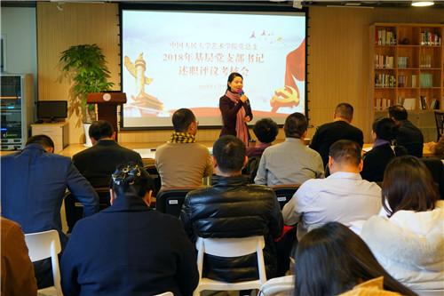 党总支书记王建就各支部书记的述职逐一进行了点评。他肯定了各支部党建工作的优势特色和经验举措,认为各支部能够严格执行上级党组织要求,主题党日活动、组织生活会规范化程度高,能够充分与艺术学科特色相结合,“两学一做”学习教育常态化规范化执行效果较好。同时,王建书记也对2019年基层党建工作提出新的要求,如教工党支部应继续加深理论学习深度,加大政治教育力度,使支部党员在思想上、行动上与党中央保持高度一致,同时,要与群众密切联系,更好地发挥教工支部的战斗堡垒作用。员工党支部应继续发扬高年级带低年级、党员员工带普通员工的优良传统,在党员管理上坚持从严要求、从严教育、从严管理、从严监督,筑牢思想防线,持续壮大党员队伍。