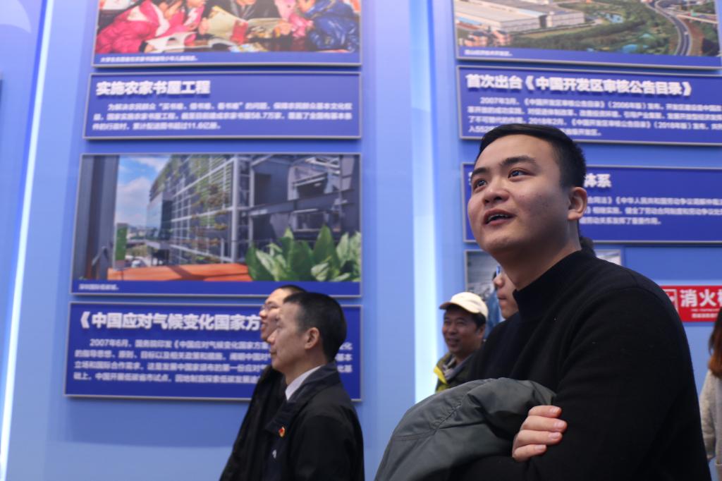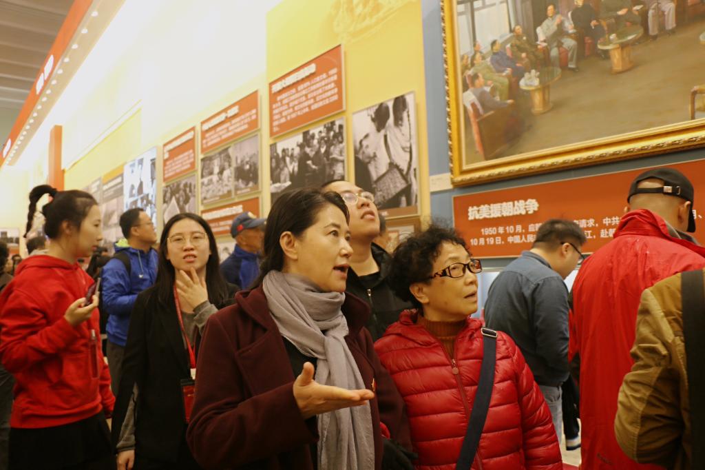 展览场馆参观顺序按新中国成立年份排列,规模宏大、布置有序。依次参观各个展馆,新中国各发展阶段历史印记重现眼前,第一台“东方红”成功生产、焦裕禄书记的不朽奉献、文革之后恢复高考、全国人民代表大会的成功召开、小岗村的创新推广······直到如今的美好新时代。