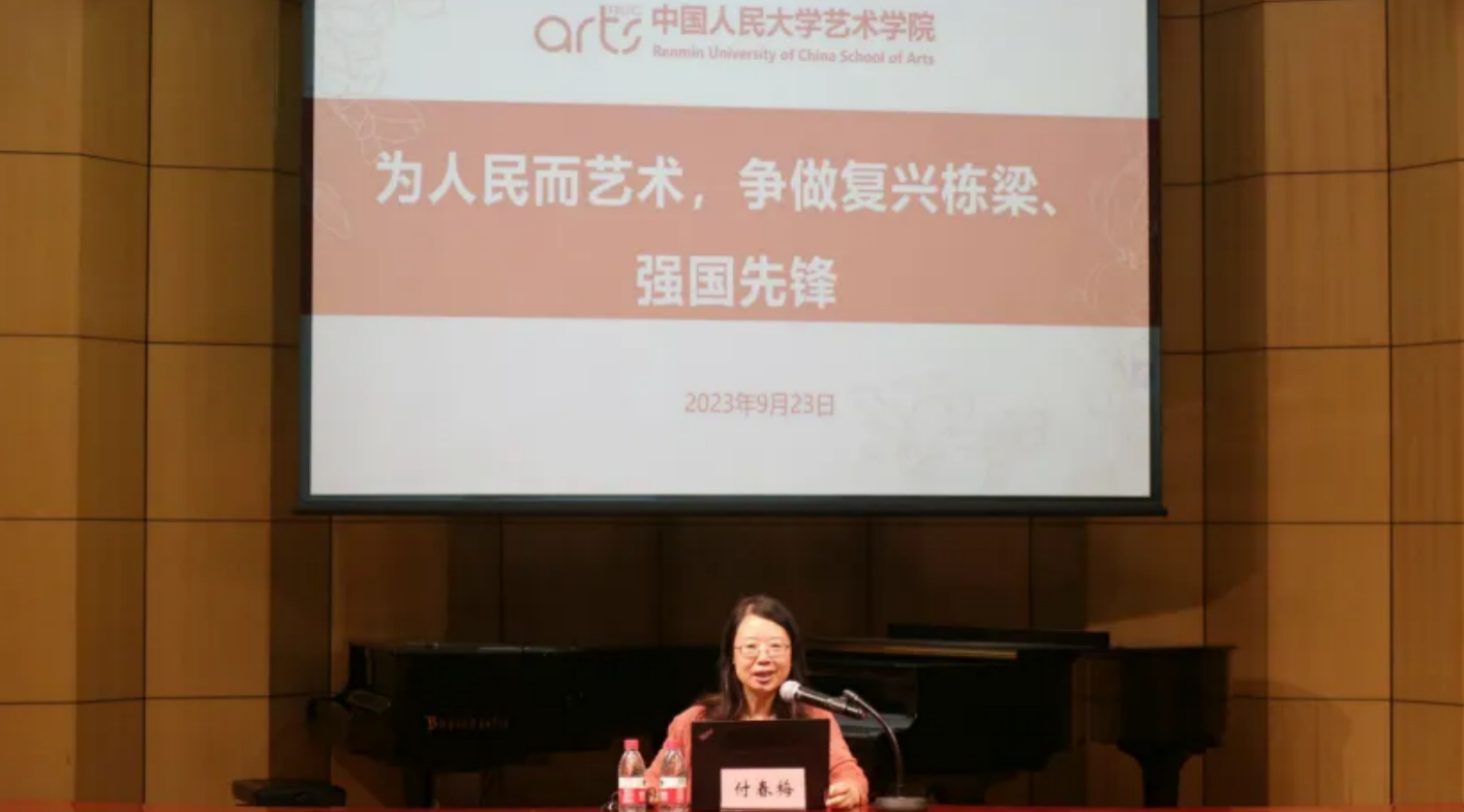 在本次课程中,付春梅结合自己的亲身经历,从世界观、方法论和人生观的角度,深入浅出、生动形象地为同学们送出了开学第一份“祝福”和“嘱咐”。她勉励同学们牢记“为人民而艺术”的初心使命,承担好新时代赋予青年一代的责任,在新时代新征程,勇当开路先锋,争当事业闯将,争做“复兴栋梁、强国先锋”。