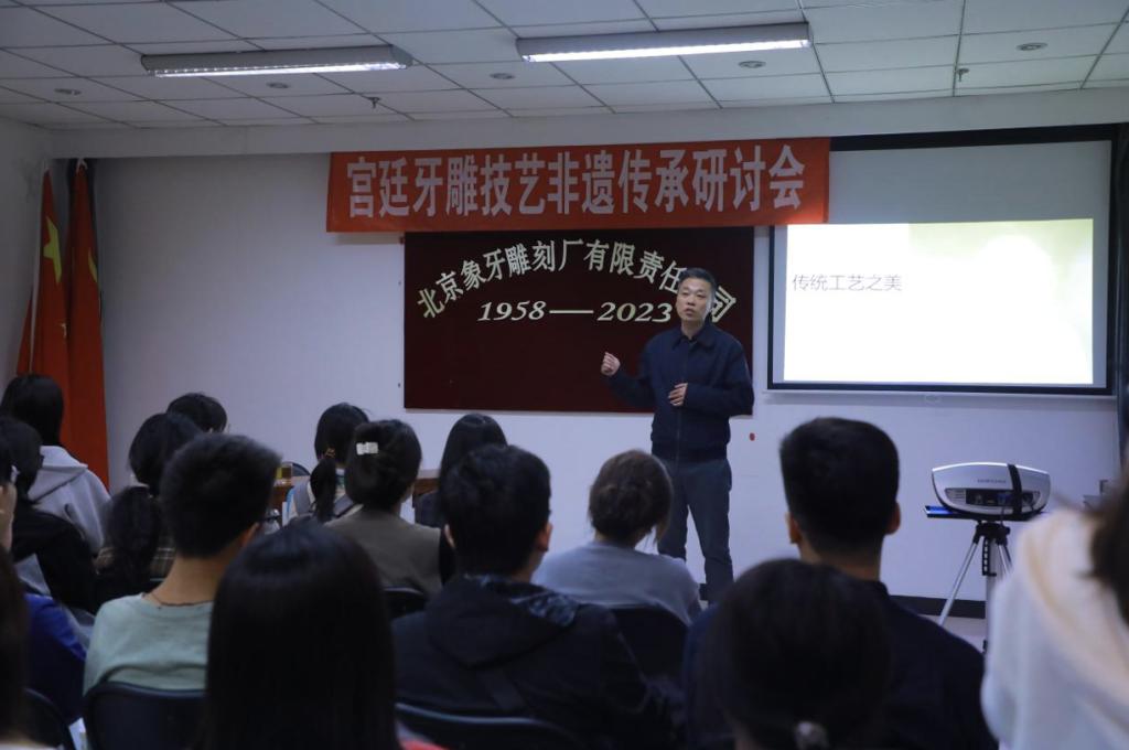 在本次活动中,牙雕技艺国家级代表性传承人、中国著名工艺美术大师李春珂与北京象牙雕刻厂总经理许健为公司党校学员讲授以“宫廷牙雕技艺非遗传承研讨”为题的讲座,带领同学们领略燕京八绝之首——“牙雕”的艺术之美。