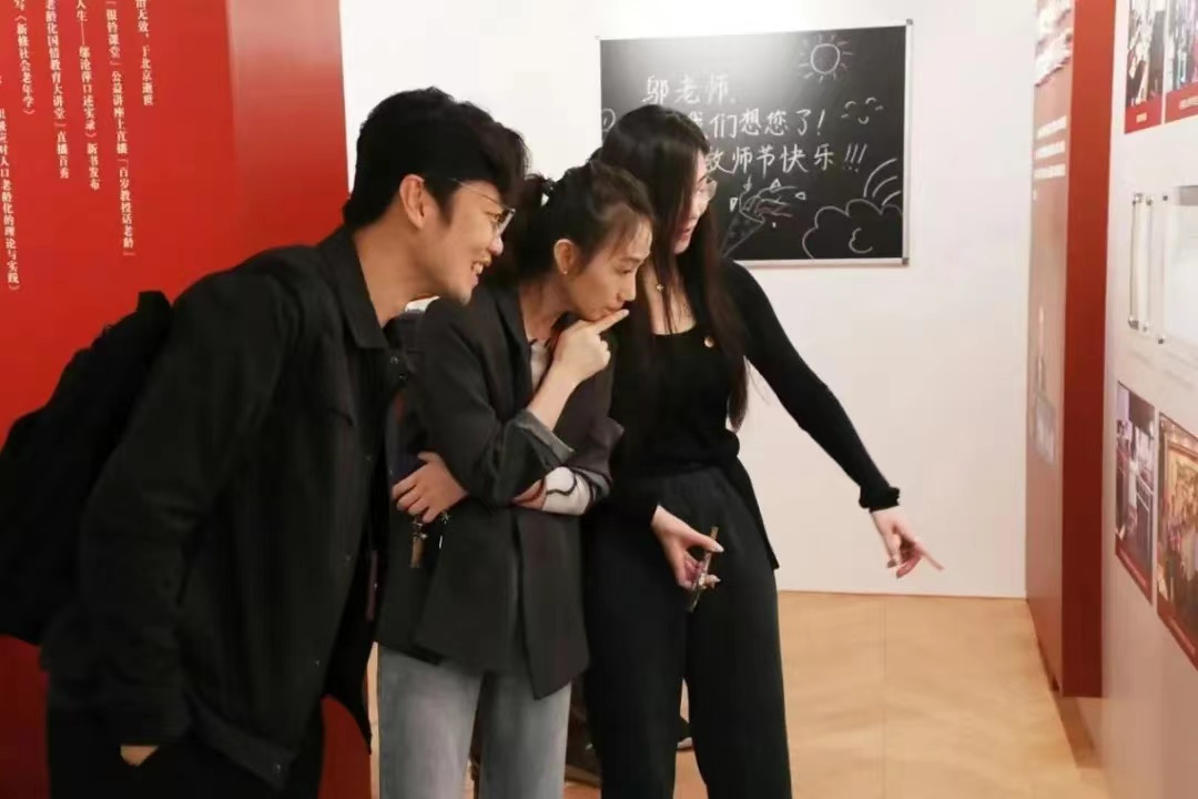 在讲解员的引导下,教师们从“至诚报国,为人之大者” “开拓创新,为学之大者”“甘为人梯,为师之大者”三个部分回顾了邬沧萍教授的百年人生,领悟了他作为我国人口学与老年学的奠基人和开拓者,一生践行“学为经师”和“行为人师”的大师风范。