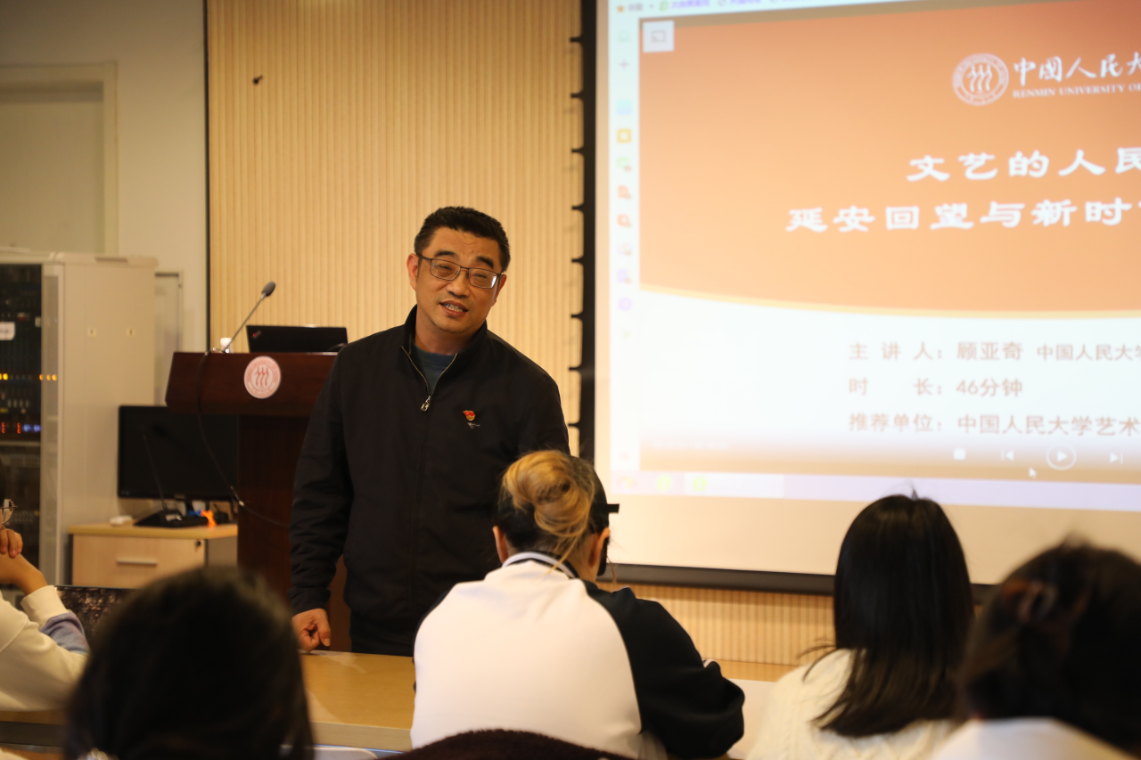 本次党课中,顾亚奇教授详细阐述了“文艺的人民性”的内涵,在围绕由其主讲的党课大赛获奖作品视频进行讲解的同时,又结合当代艺术发展现状,增添新感悟、补充新事实,既回顾历史,又立足当下。